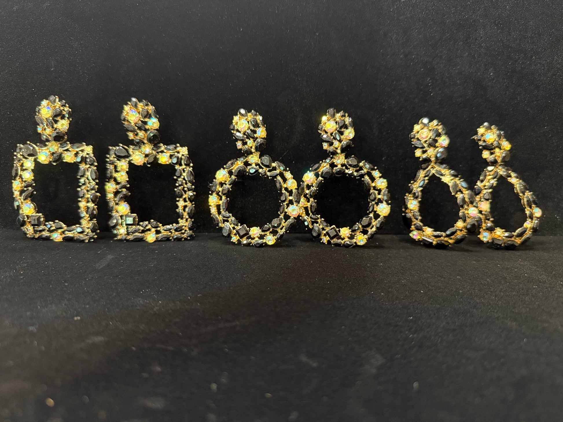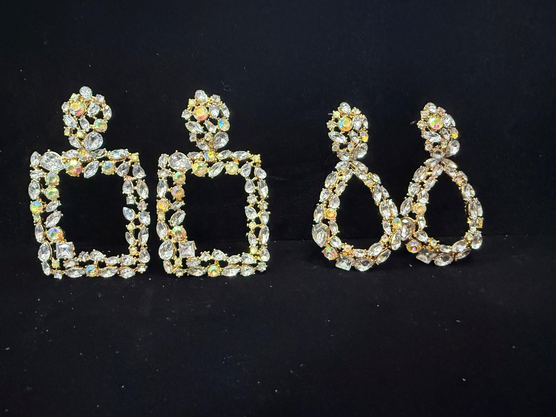 Add sparkle and bold style to your look with these Heavy Crystal Statement Earrings. Designed with shimmering rhinestones in unique shapes – square, round, and teardrop – they bring European-inspired glamour to any outfit.