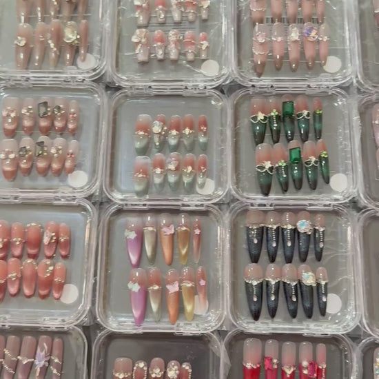 ✨ Elevate your nail game with these luxury boxed press-on nails, featuring dazzling cat eye designs and heavy rhinestone embellishments. Each set is carefully crafted to deliver salon-quality glamour in minutes.