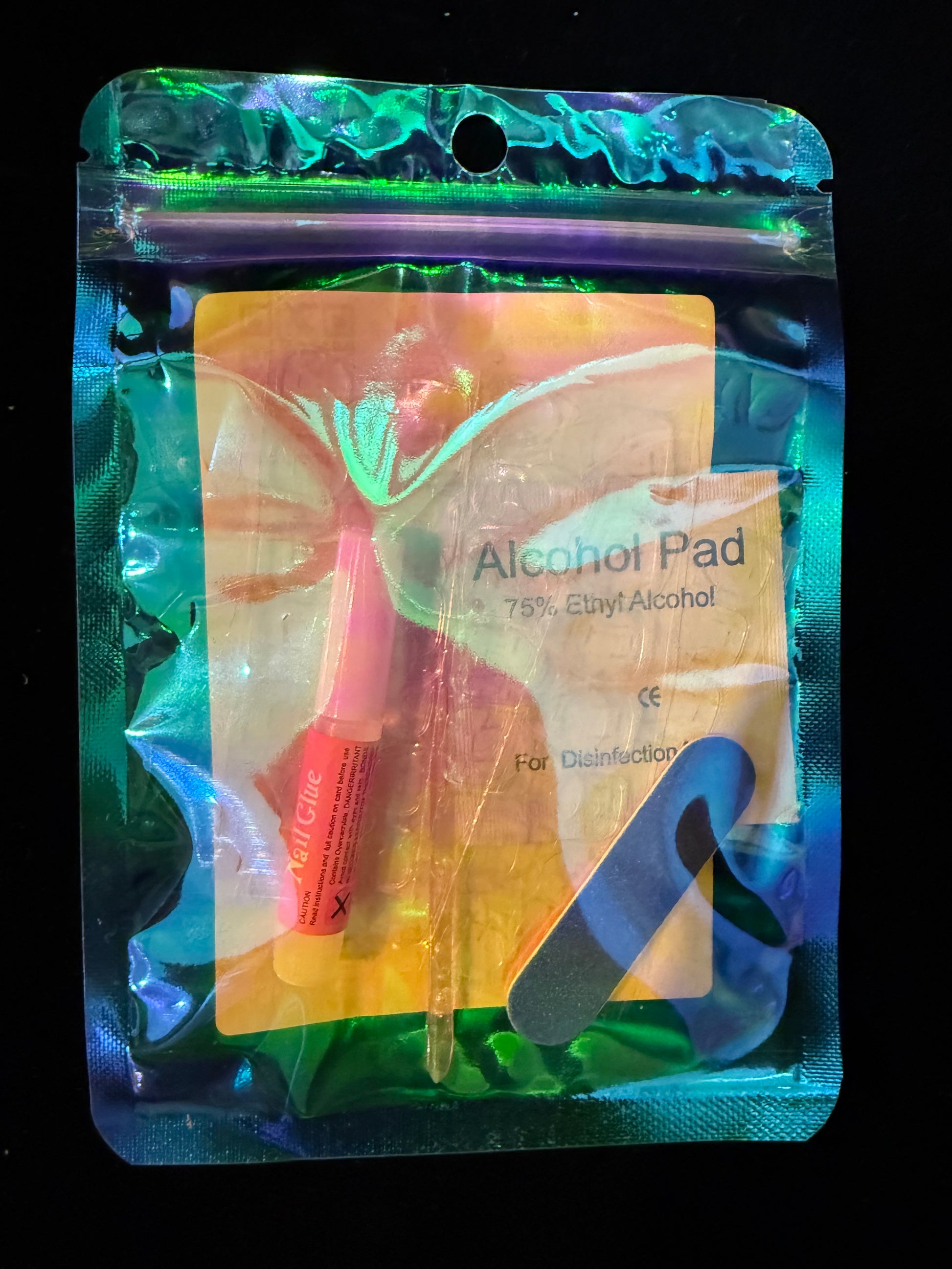 - 1 × Nail Glue (0.35 oz / 10g) – Strong hold, long-lasting wear (3–4 weeks with proper application)