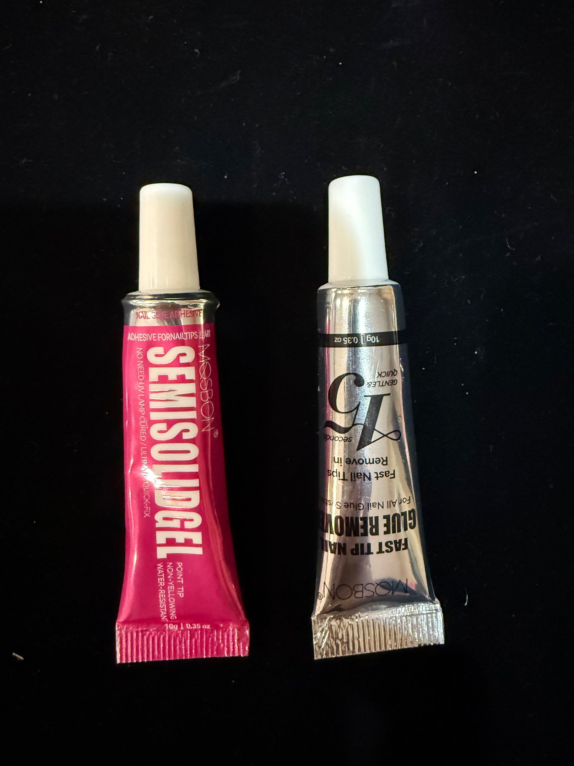 - 1 × Glue Remover (10g / 0.35oz) – Quick and safe removal of nail glue. Helps lift nails easily without damaging your natural nails.