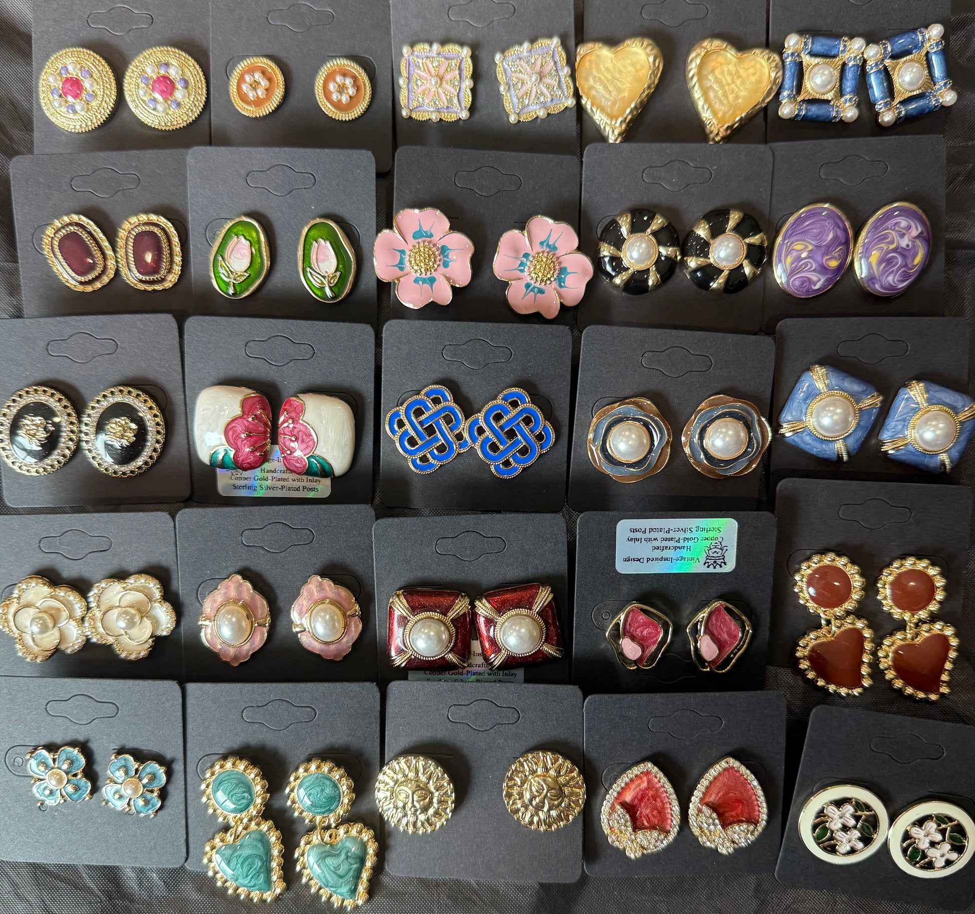 Add a touch of timeless elegance with our vintage-inspired earrings, crafted with exceptional detail and artistry. Each piece is made using hand-painted enamel (hand-dripped oil) techniques, giving the earrings a unique texture and vibrant color.